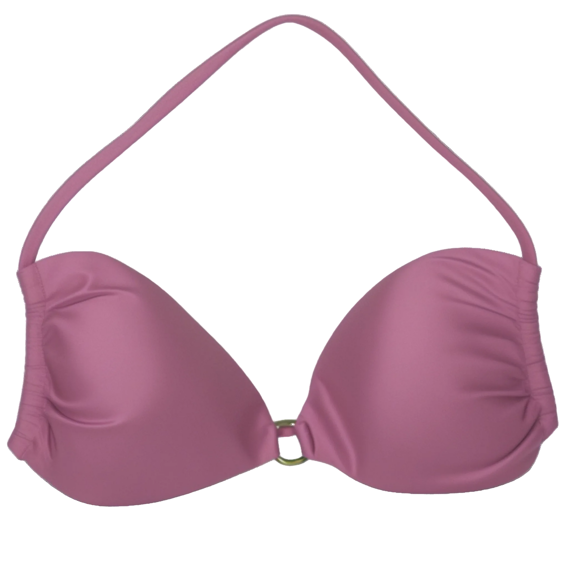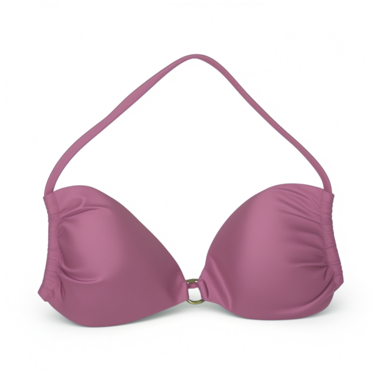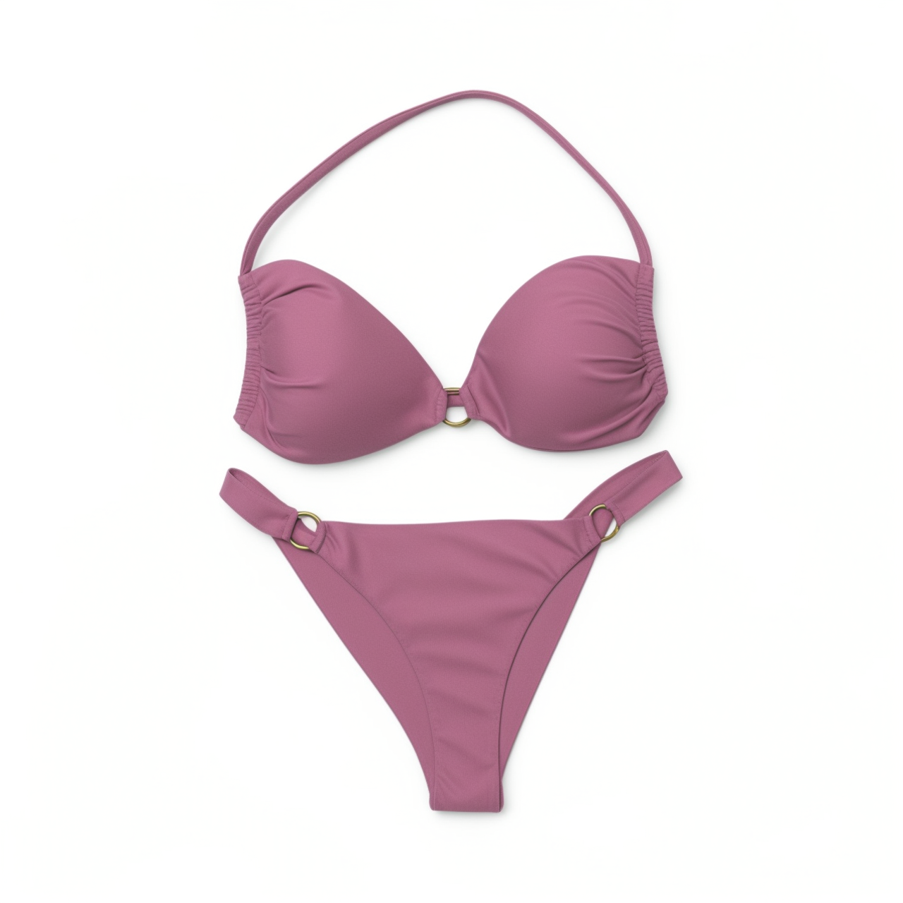 The thin-strap top with back ties enhances the bustline beautifully, while the gold-plated ring detail adds a luxurious golden accent. The removable padding ensures comfort and versatility.