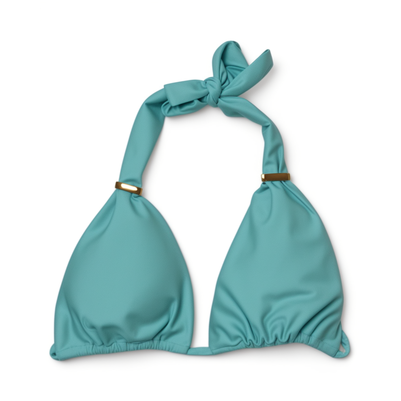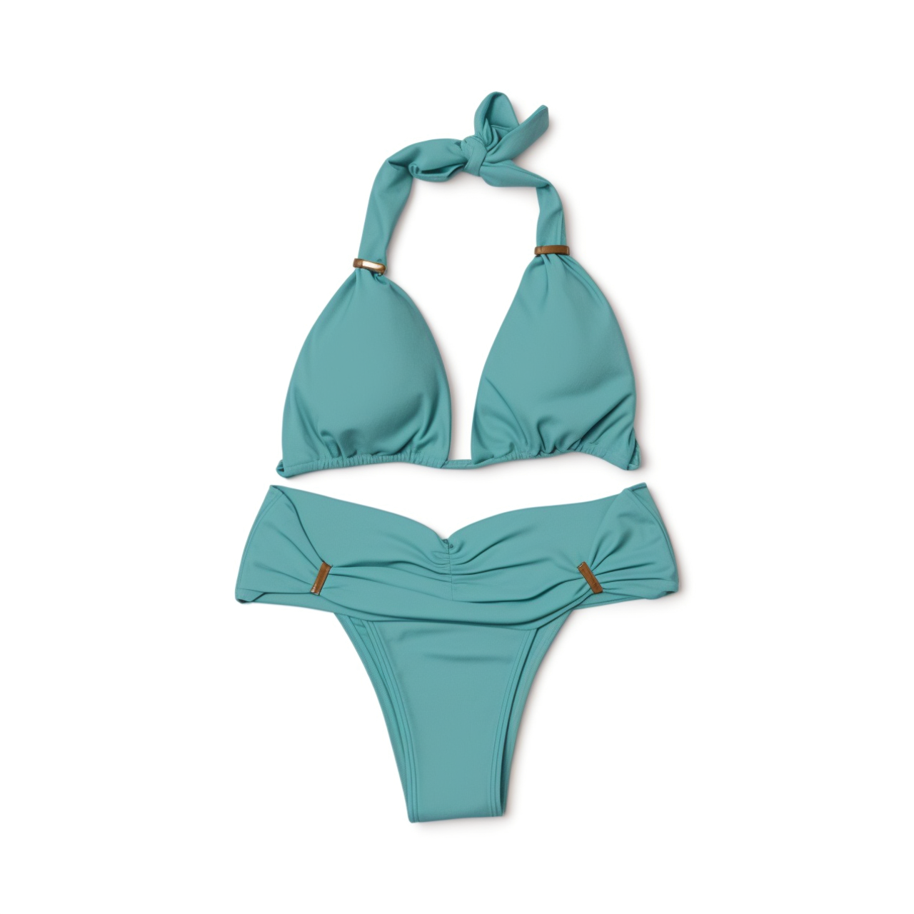 The Frais Bikini captures the essence of effortless elegance with a modern twist. Its wide-strap halter top, featuring removable padding, offers both comfort and support while enhancing the natural curves of the bust.