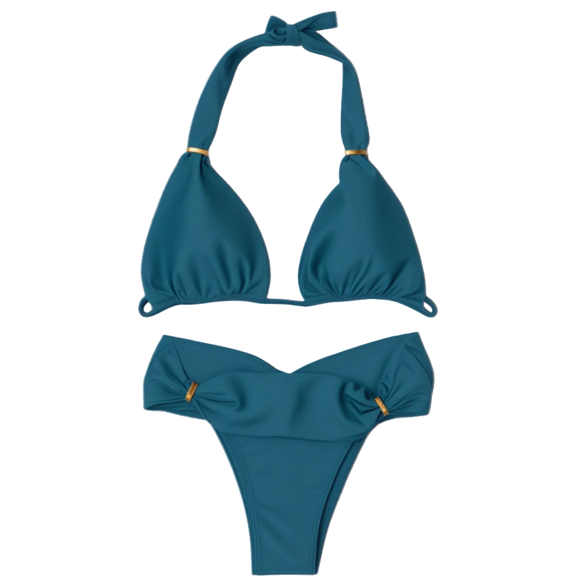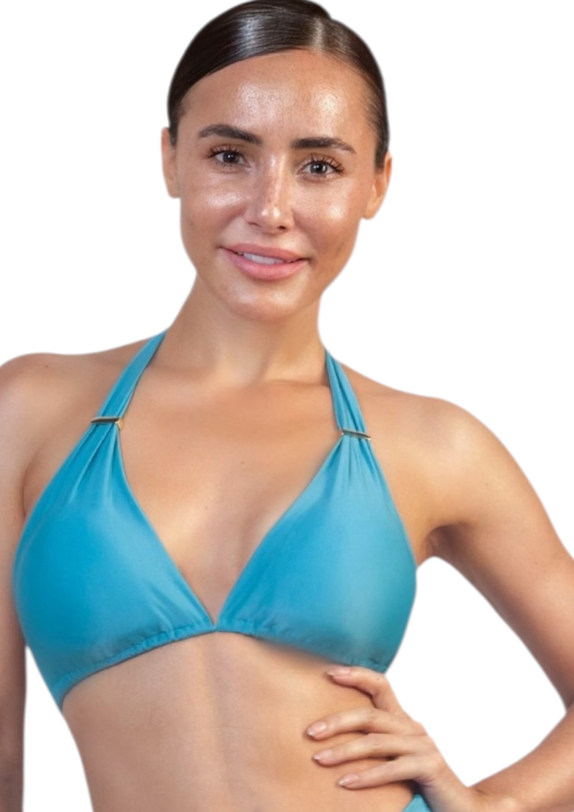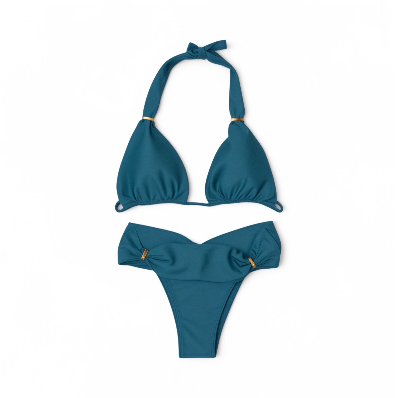 Inspired by the shimmering calm of tropical lagoons, the Laguna Bikini blends luxury and comfort in perfect harmony. Its wide-strap halter top offers natural support and a flawless fit, while the removable padding enhances the bust beautifully.