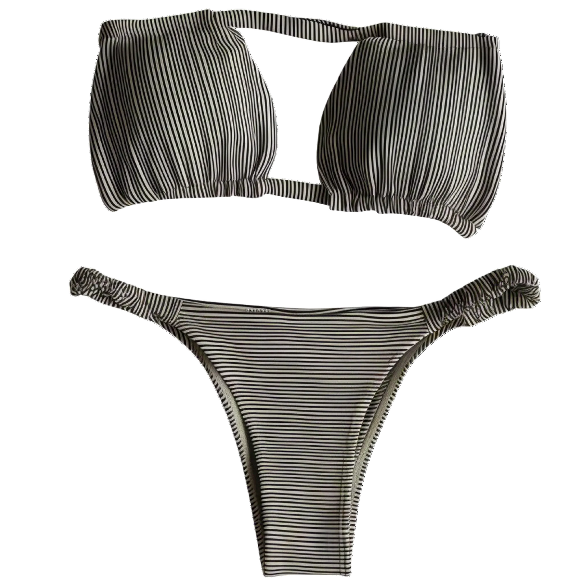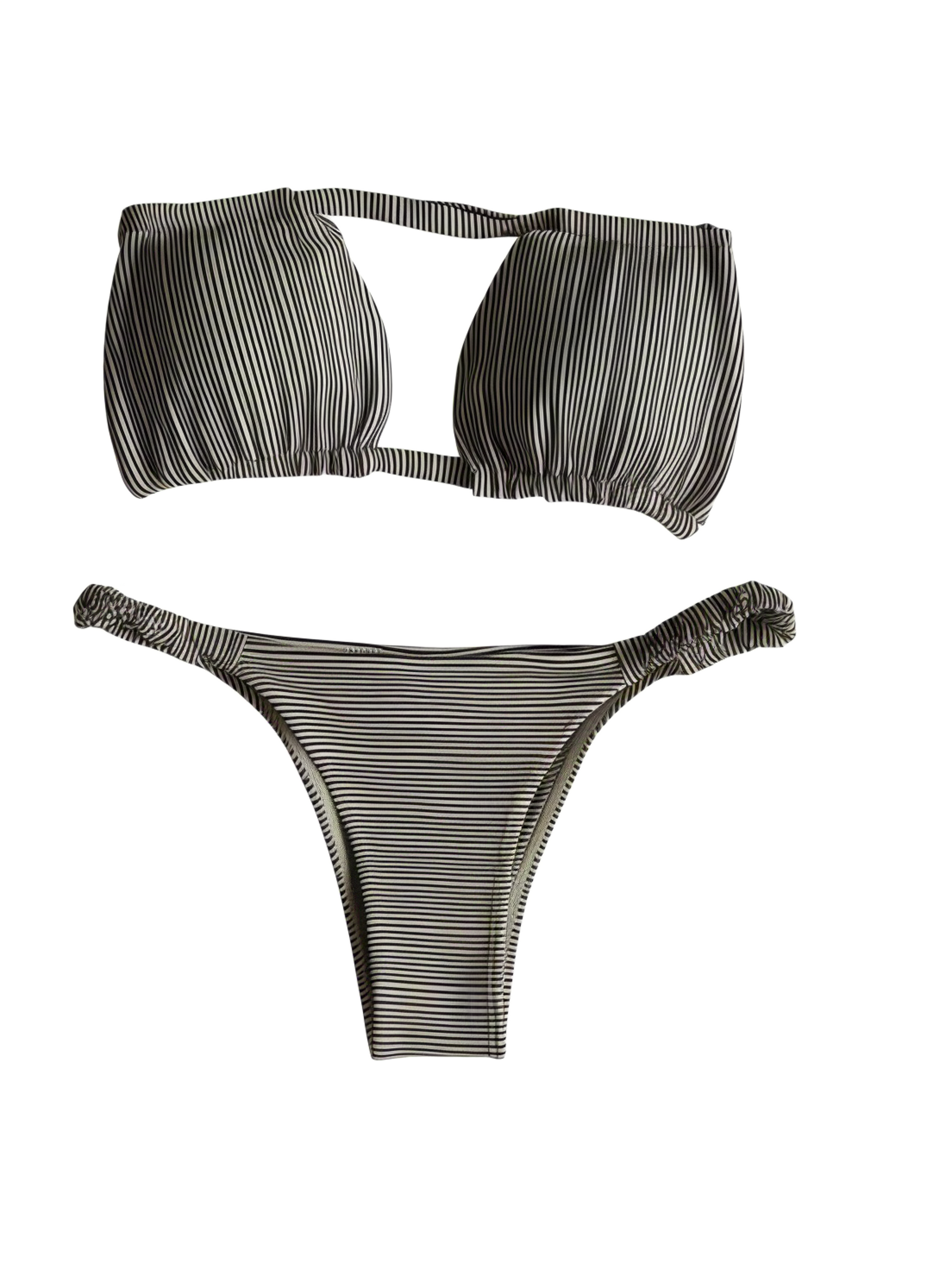 The Stripes bikini is perfect for those seeking sophistication, comfort, and a modern touch. The wide double-strap curtain-style top provides support and perfect drape, while the removable padding ensures flexible fit and comfort. With multiple tying options, you can customize your look, creating unique styles for every occasion.
